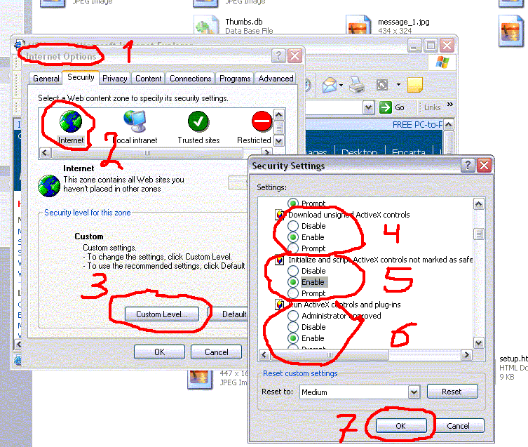2.Change settings for ActiveX Controls like this: